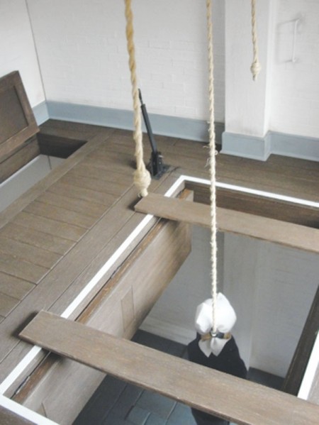 “After the noose is tied around their neck, the trap doors are opened and the prisoner struggles briefly while fading to the final breath,” he says.